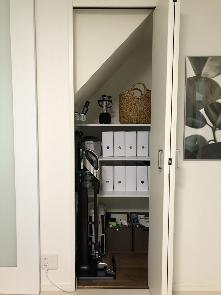 扉付き収納にして掃除機や日用品をスッキリ格納